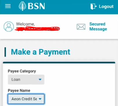 Sila ikuti langkah pembayaran AEON Credit guna BSN online di bawah ini: