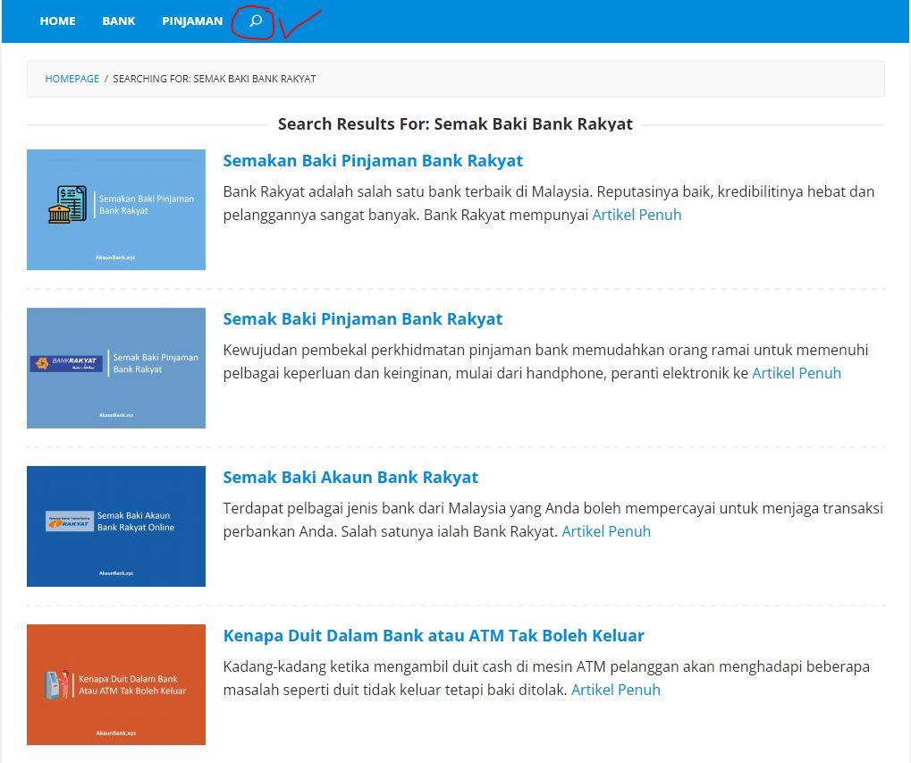 - Masukkan kata carian yang Anda inginkan, contoh semak baki akaun Bank Islam, klik Enter.