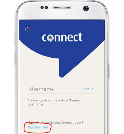- Selepas aplikasi dipasang, buka aplikasi Hong Leong Connect.
