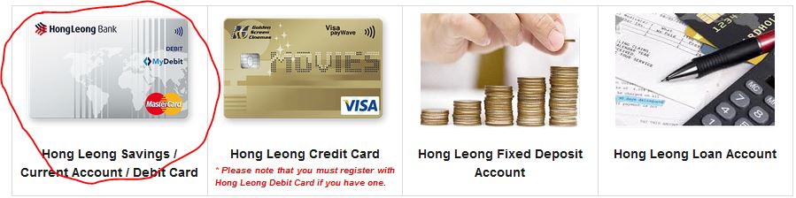 - Kemudian pilih produk Hong Leong yang Anda miliki.