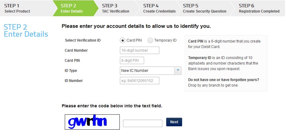 - Masukkan kod TAC, kemudian buat User ID dan kata laluan yang Anda inginkan.