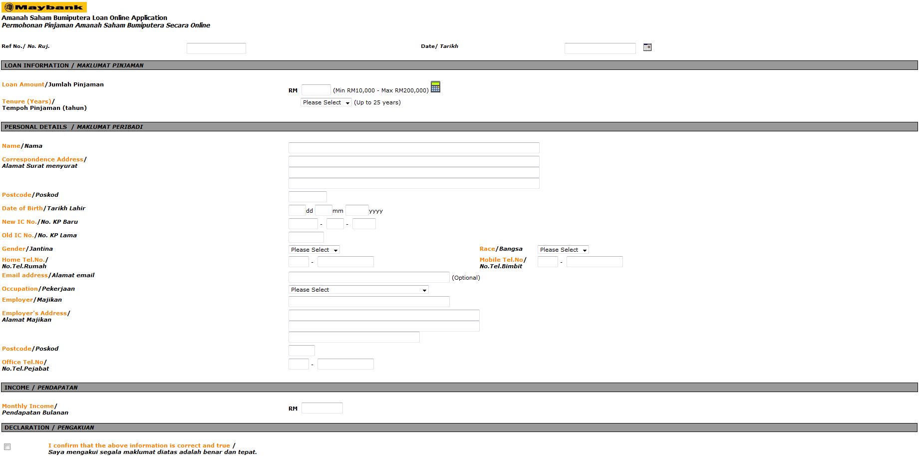Anda boleh mengisi borang permohonan pinjaman ASB Maybank melalui laman Amanah Saham Bumiputera Loan Online Application