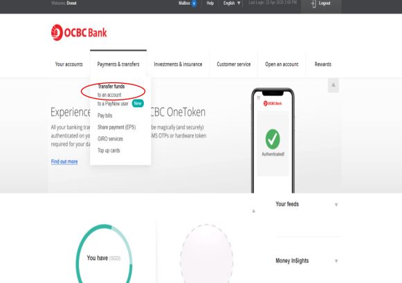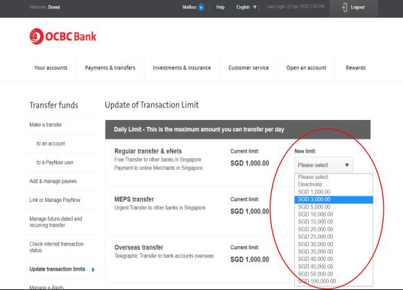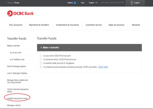 Ikuti langkah-langkah cara tukar limit transfer OCBC Bank di bawah ini: